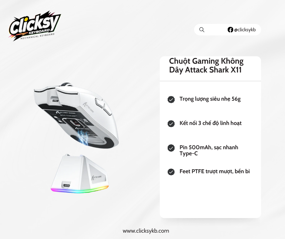 Hãy trải nghiệm sự khác biệt với chuột Attack Shark X11 LED RGB không dây ngay hôm nay!