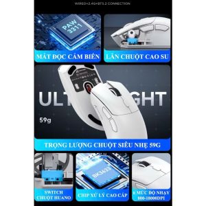 - Có Dây, 2.4G và Bluetooth 5.2: Cho phép bạn dễ dàng chuyển đổi giữa các chế độ kết nối, phù hợp với mọi tình huống sử dụng.